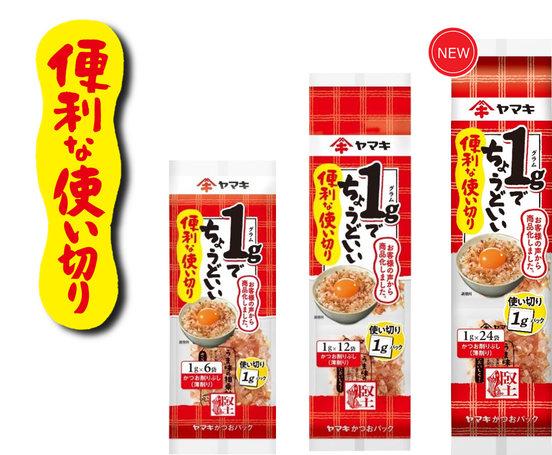 ヤマキ株式会社(本社:愛媛県伊予市 代表取締役社長:城戸善浩、以下 ヤマキ)は、お客様の使いやすさを考えた『便利な使い切り』シリーズから、新たに大容量パックとして「便利な使い切りパック 1g×24袋」を発売します。