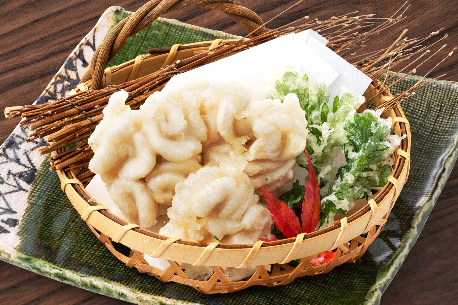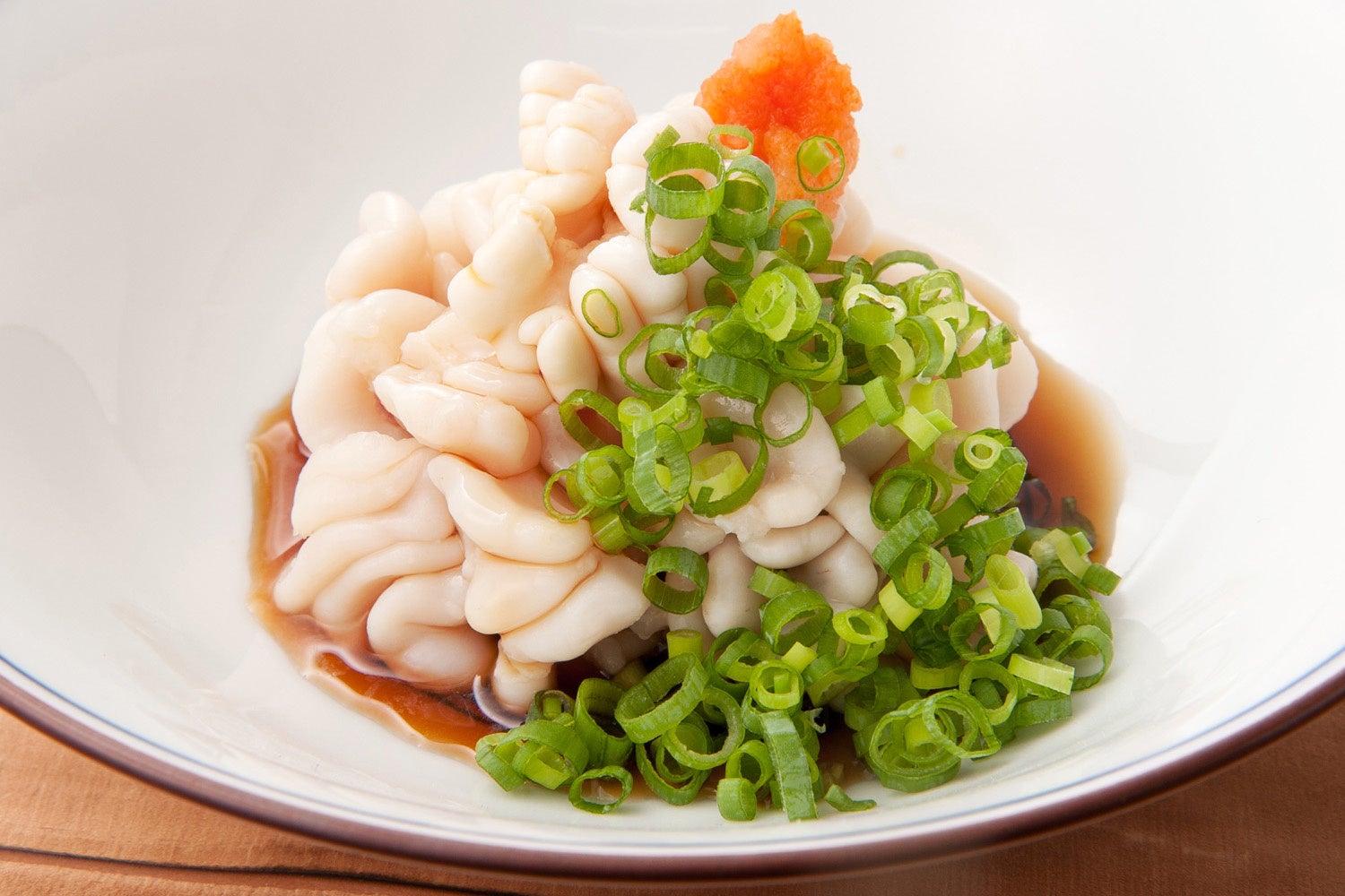 まず、1・2月の旬メニューで食べてほしいのは「寒鰤タタキ」(750円)です。グループ会社である豊洲市場の老舗仲卸「米川水産」(※)が目利きした脂がのった寒ブリを使用。板前の技で炙ることで、素材本来の味を引き立てます。一口食べれば寒ブリの旨味と、柚子ぽん酢の爽やかな香りが口いっぱいに広がります。白子料理は、「白子ぽん酢」「白子天布羅」(各650円)の2種と用意。この他、「ブリ大根」(780円)、「鰤のタレかつ」(680円)、「あんこう小鍋」(680円)、「なまこ酢」(550円)、「目光唐揚げ」(450円)の全8種を揃えました。