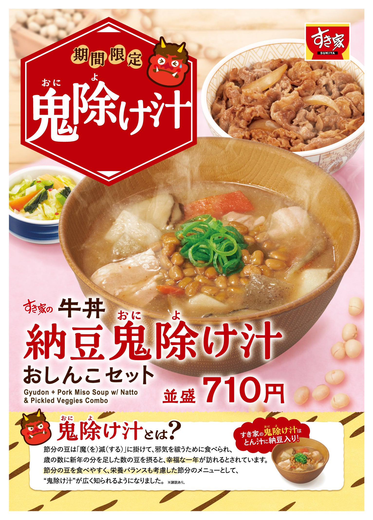 ぜひこの機会に、すき家でもお家でも、「納豆鬼除(おによ)け汁」をお楽しみください。