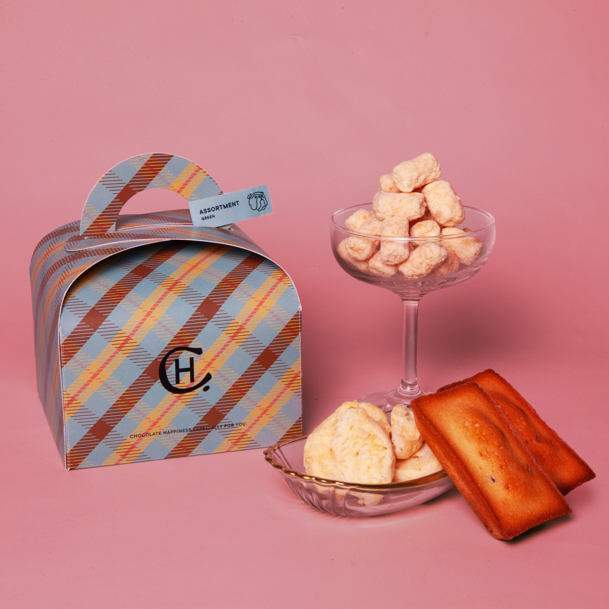 チョコチップフィナンシェ、むっちりとした弾力のあるギモーブチョコレート、しみこみチョコレートのアソートコレクション。
