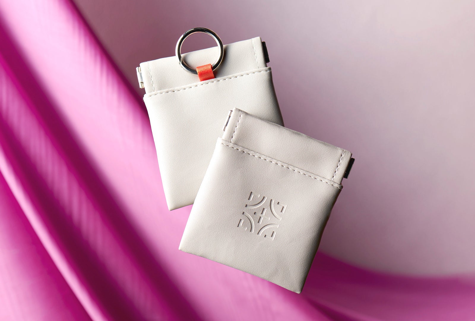 条件を満たしたお客様に、先着・数量限定で「オリジナルコンパクトポーチ」がもらえるプレゼント企画を実施いたします。「オリジナルコンパクトポーチ」はブランドカラーを基調としたグレーに、象徴的なプレスバターサンドのロゴマークを箔押し。内側の布や裏側のタグにはビビッドオレンジを効かせて、バターサンドの箱を思わせるデザインに仕上げました。小さなメイク用品やアクセサリー入れなどにご活用ください。