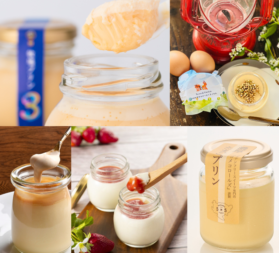 商品名:牧場プリン3、牧場プリンほうじ茶、牧場プリン甘さ控えめ