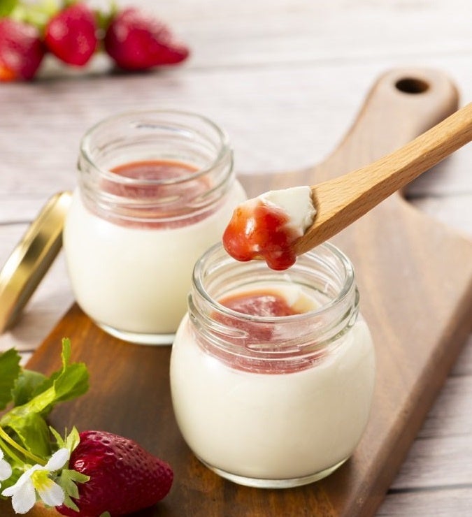 商品名:まぜまぜいちごミルクプリン、塩ミルクプリン~いちごソース付~