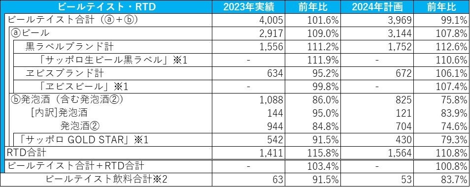 ※2 ビールテイスト飲料には、ノンアルコールビールテイストおよび微アルコールビールテイストを含む。