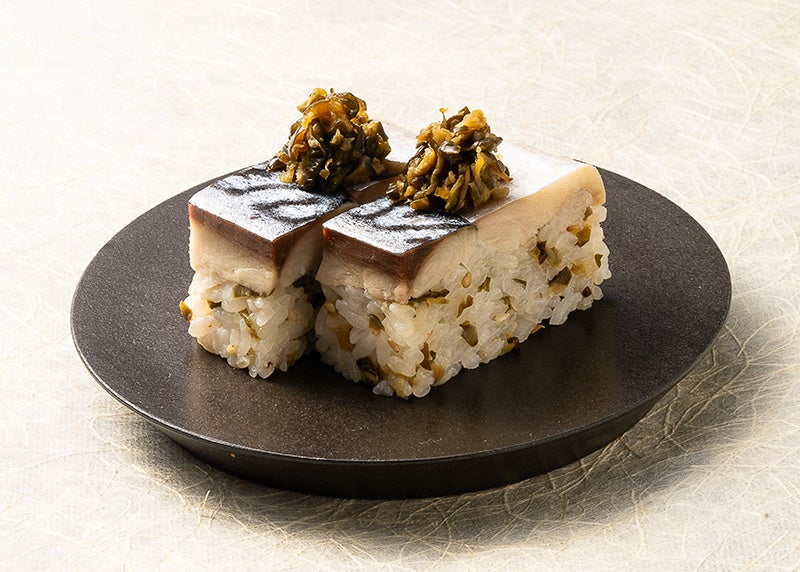 『とろ〆鯖と京漬物の押し寿司~西利 山里の香り使用~』二貫363円(税込)