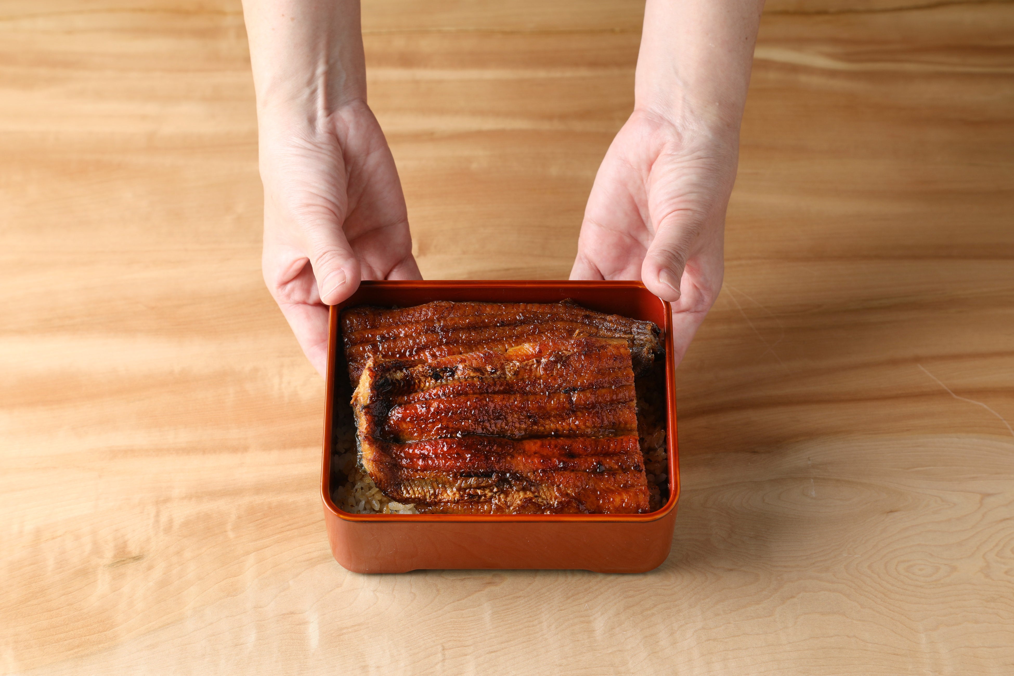 最高のひと皿を完成させる、焼きの工程。素材の旨みを逃さないよう、備長炭で、短時間で焼き上げます。皮はぱりっと香ばしく、その身はふわっと肉厚に、とろっと脂がのったうなぎ。職人の技がつまった焼き加減を、どうぞご堪能ください。