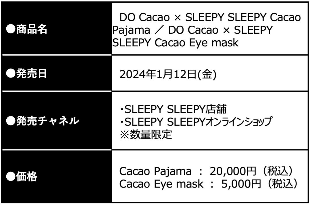 左から、DO Cacao × SLEEPY SLEEPY Cacao Pajama、DO Cacao × SLEEPY SLEEPY Cacao Eye mask