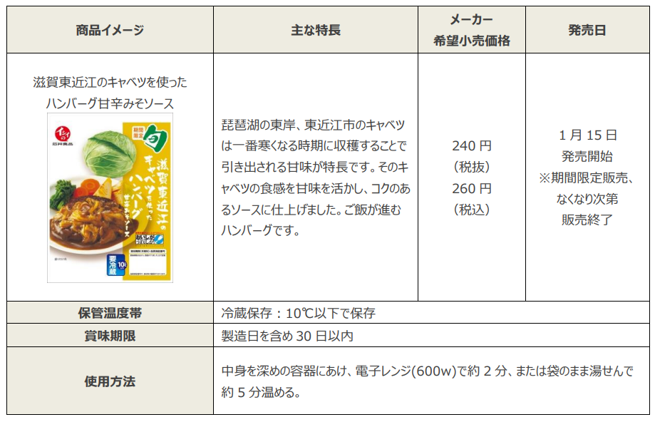 ~生産者の課題に寄り添う「地域と旬」事業を通じて開発した『滋賀東近江のキャベツを使ったハンバーグ 甘辛みそソース』を 1 月 15 日(月)から発売~
