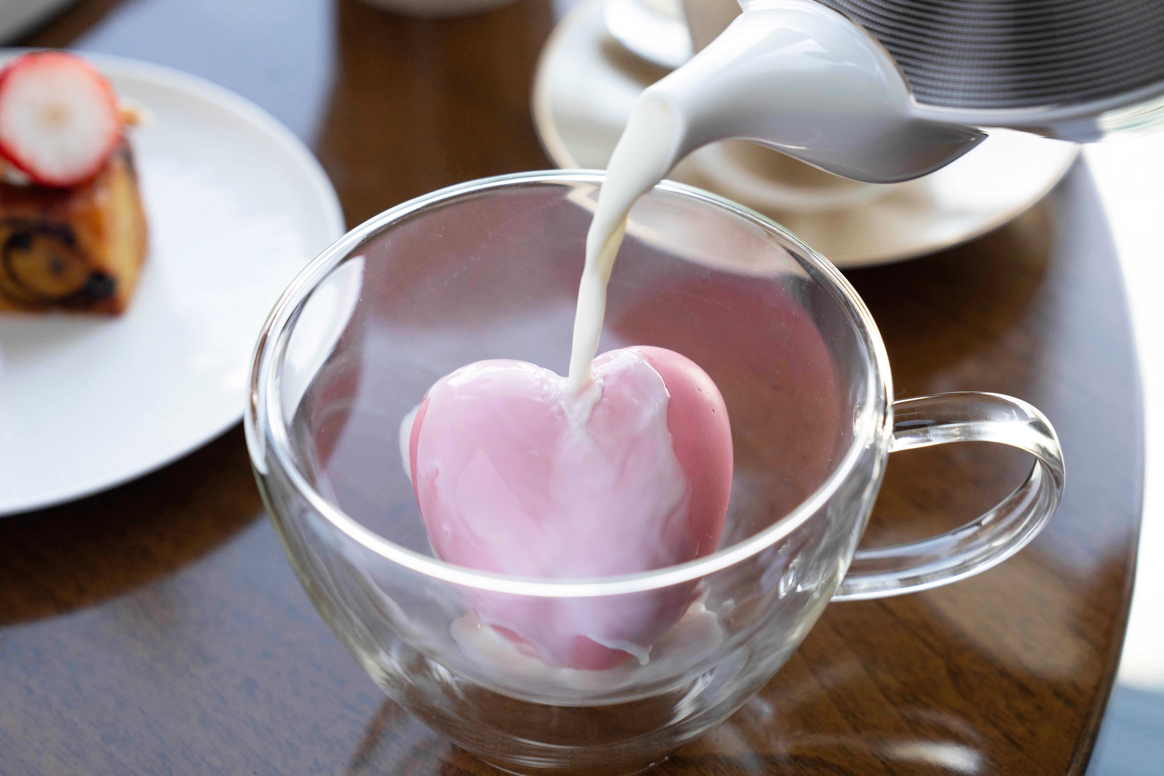 ティーセレクションには人気の「コンラッド大阪オリジナルブレンド」を含むTWG Teaの8種類の紅茶など、全10種類の紅茶と3種類のコーヒーをご用意する他、期間中は中にマシュマロとドライストロベリーを忍ばせたピンクのハートチョコレートにホットミルクを注いで作るホットチョコレート「ハートボム」が追加でご注文いただけるお飲み物として初登場します(追加料金1,000円/ 1カップ)。お好きなお飲み物をお好きなだけお選びいただき、全面に配された窓から地上200メートルのパノラマビューを堪能しながらアフタヌーンティーを楽しむ贅沢な時間をお過ごしください。また「MELT YOUR HEART」ストロベリーアフタヌーンティーは、コンラッド大阪オリジナルのファッションバッグのようなボックスに入ったテイクアウトアフタヌーンティーでもお楽しみいただけます。
