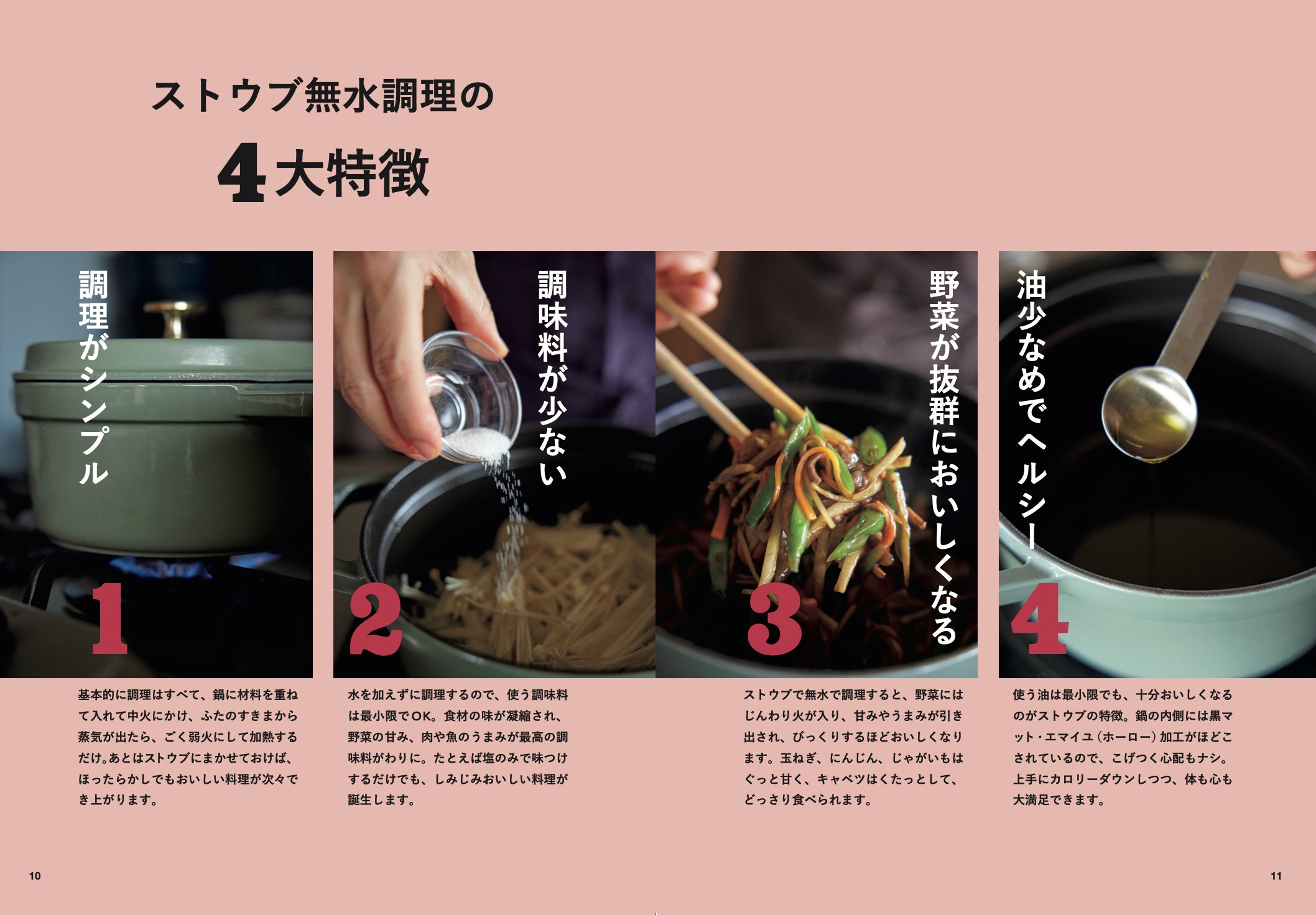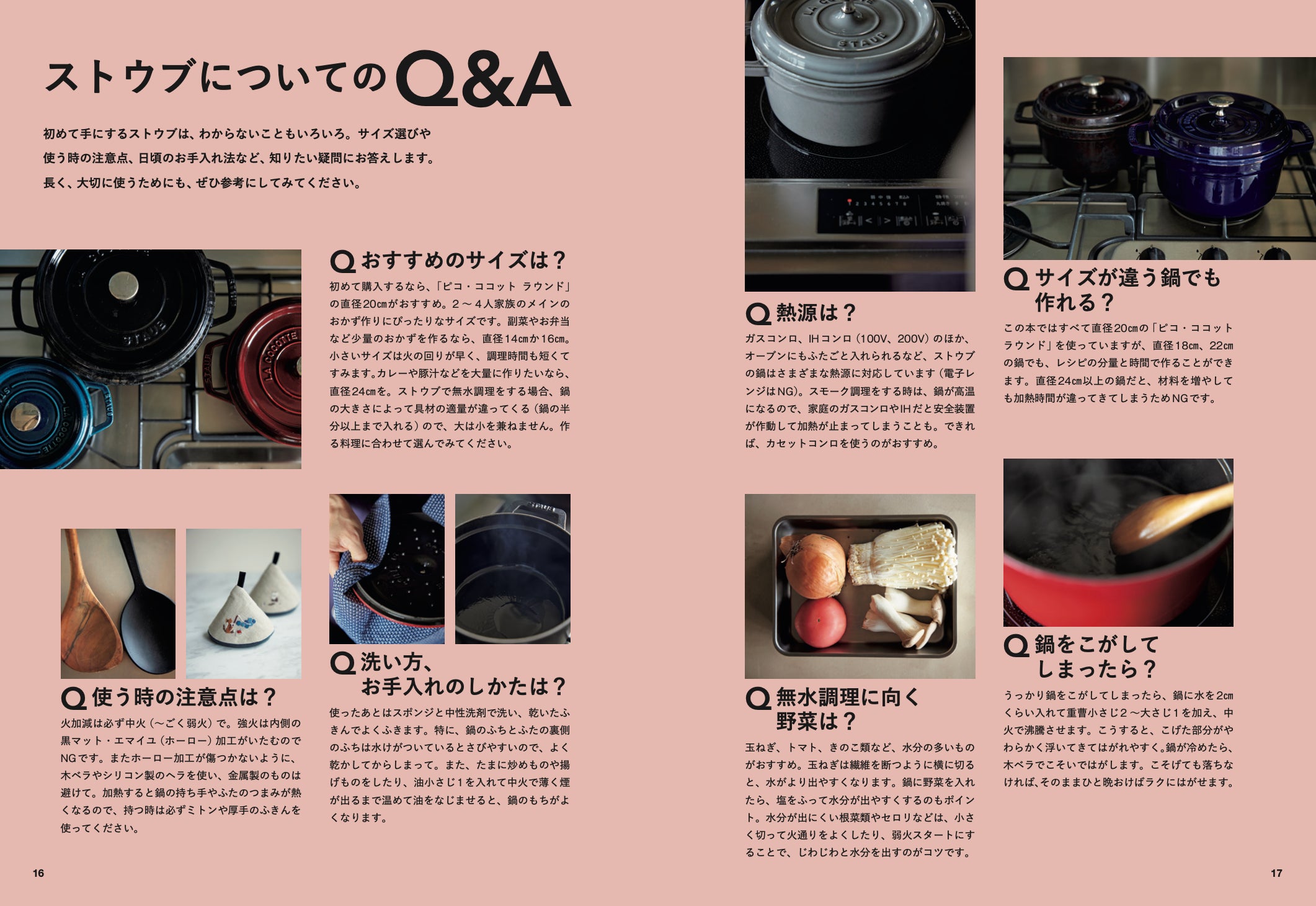 基本の料理はすべてオールプロセスつき。ストウブの扱い方に関するQ&Aもたっぷり!