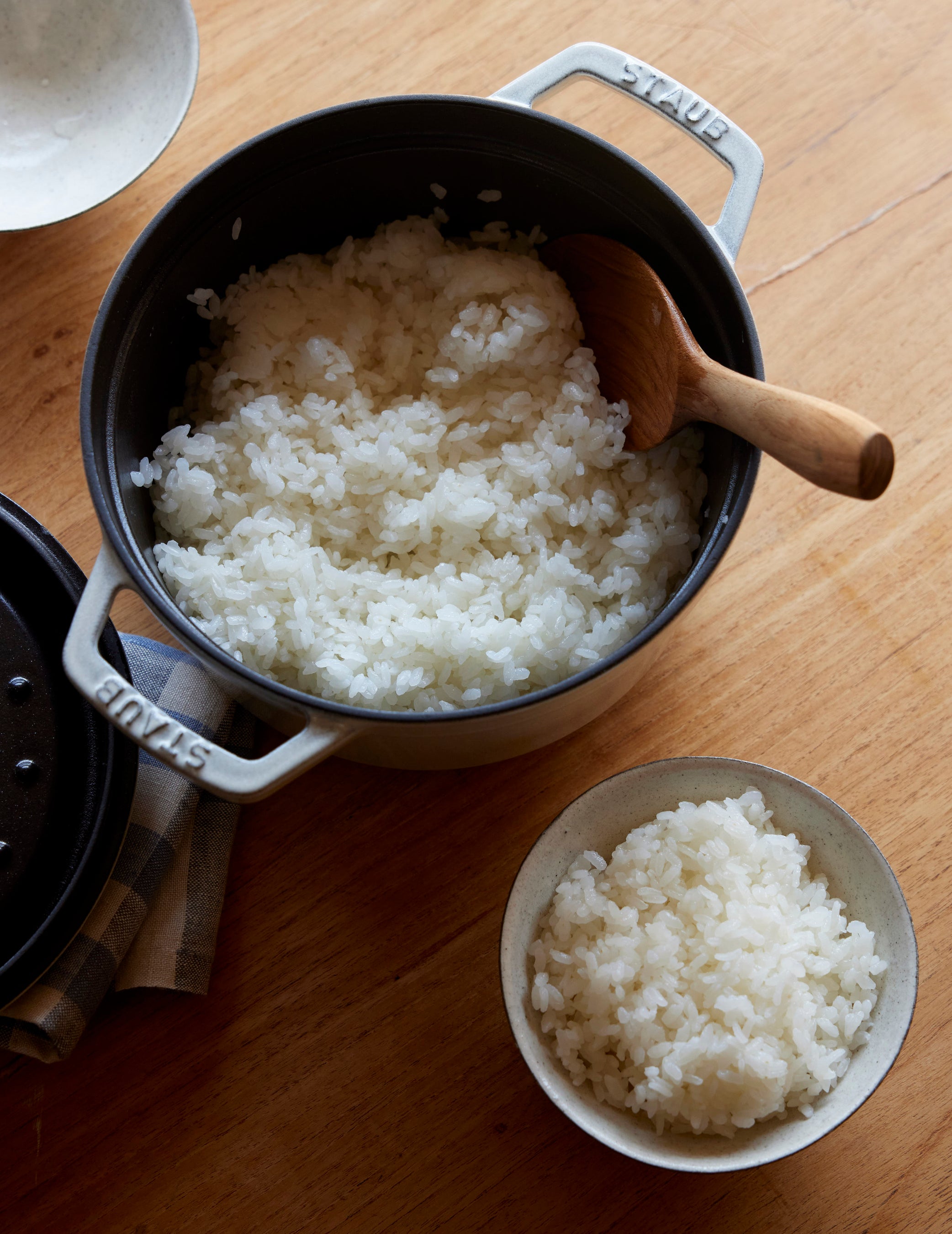 ストウブで炊けば米粒がピンと立って、つやつや輝くごはんに。そのおいしさは、おかずがいらないほど!