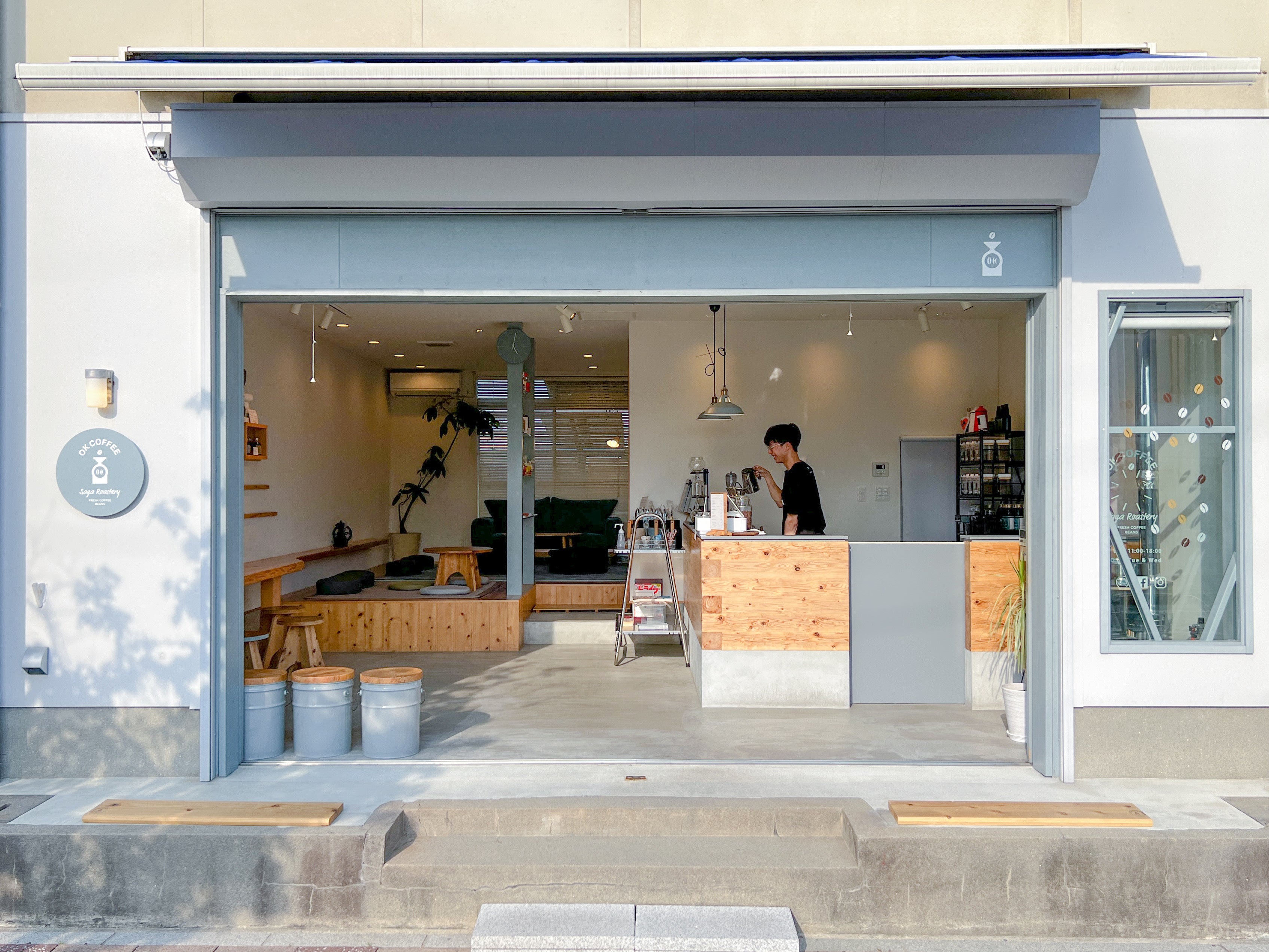 私は吉野ヶ里町に生まれ育ち、2018年に創業80年続く家業を継ぎました。現在も吉野ヶ里町で製造業を営んでおり、祖父より3世代が育ったこの町に恩返しをしたいという想いで作ったお店がOK COFFEE Saga Roasteryです。