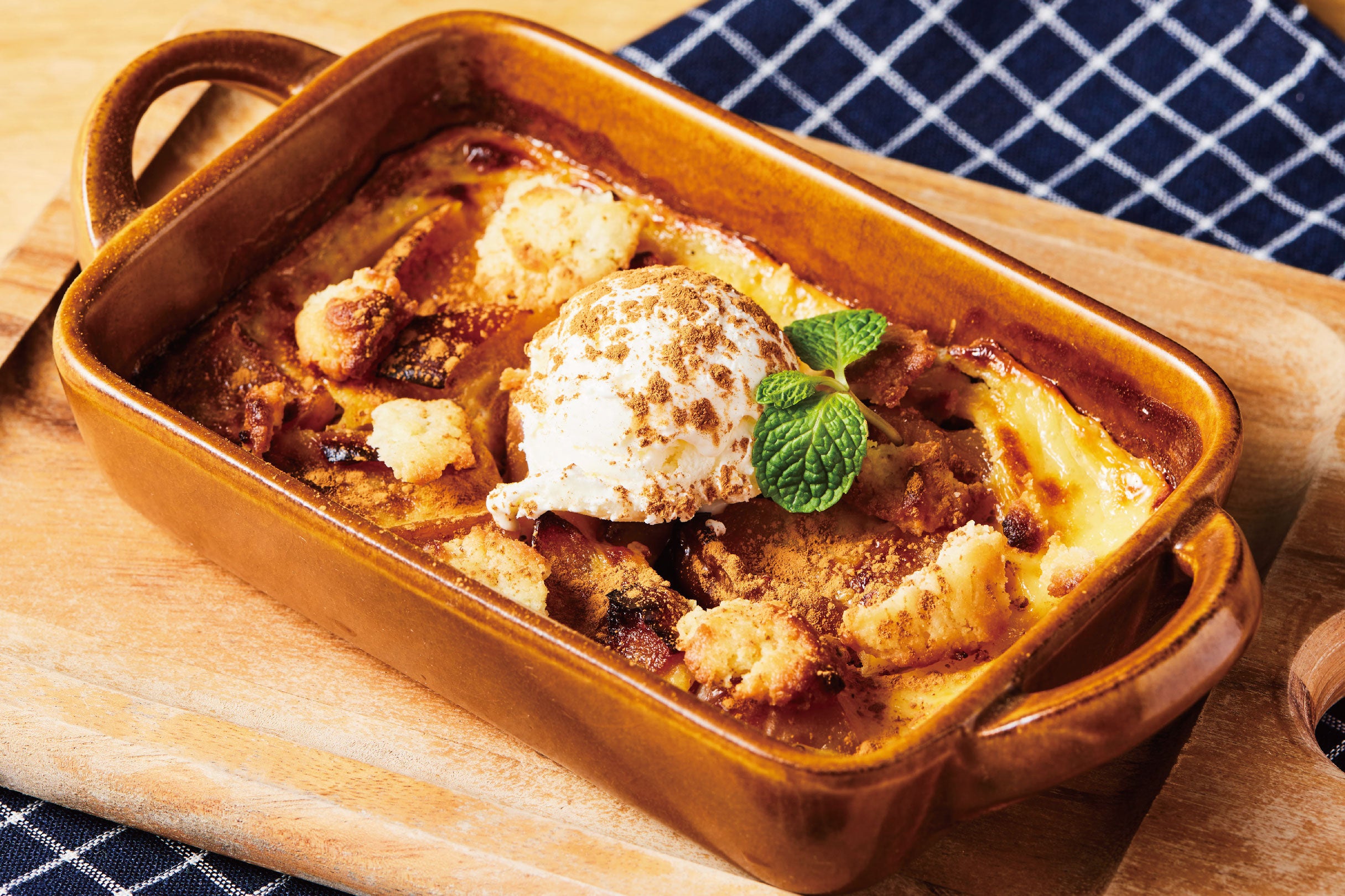 ●販売店舗コメント:林檎の優しい甘さが美味しい焼きたてグラタンにバニラアイスを添えた温かいスイーツメニューをお楽しみください。