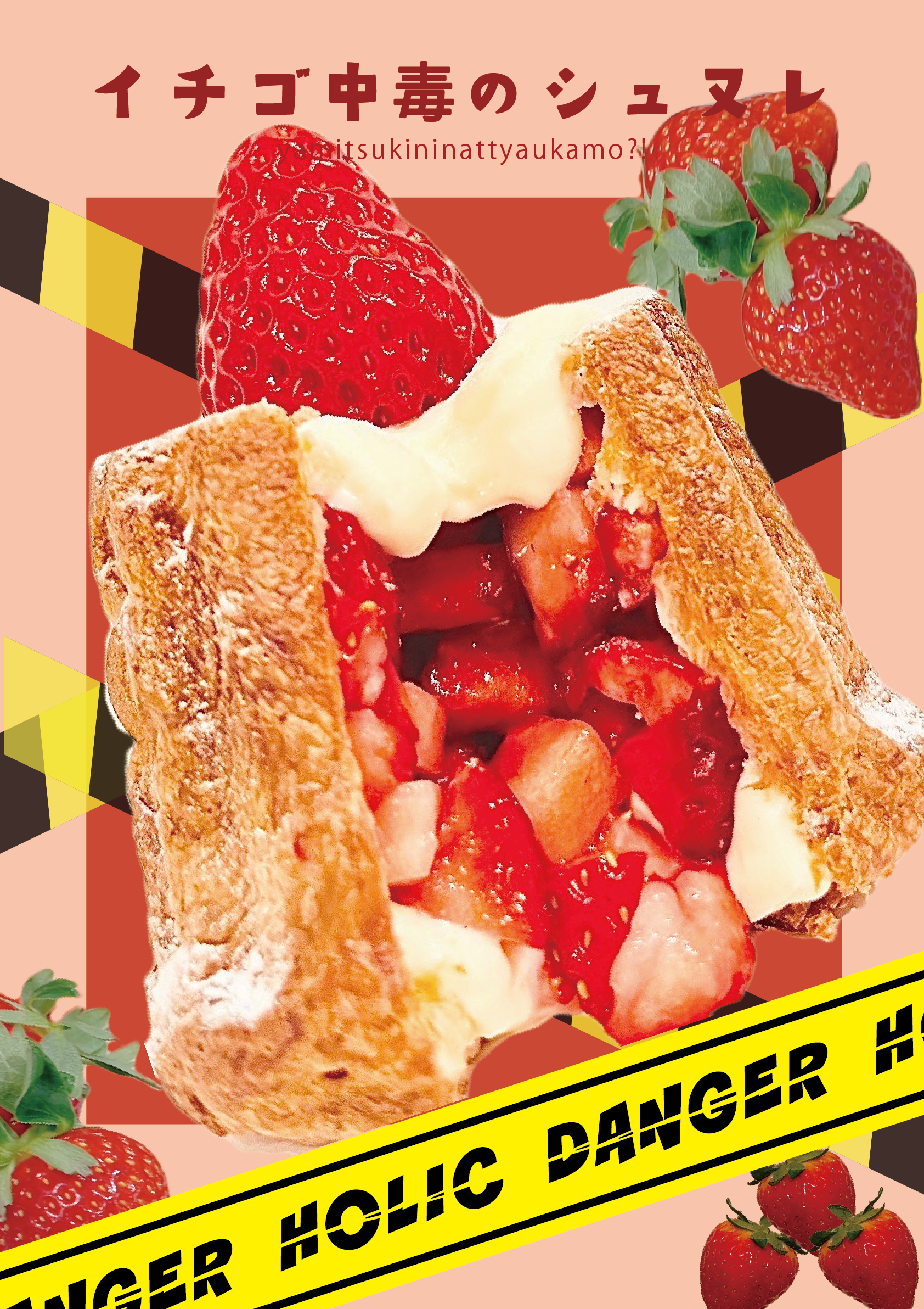 ごろごろっと中から溢れ出るいちごたち。ひとくち頬張ればまさに〝いちご中毒〟の危険性がございます。ご注意ください。