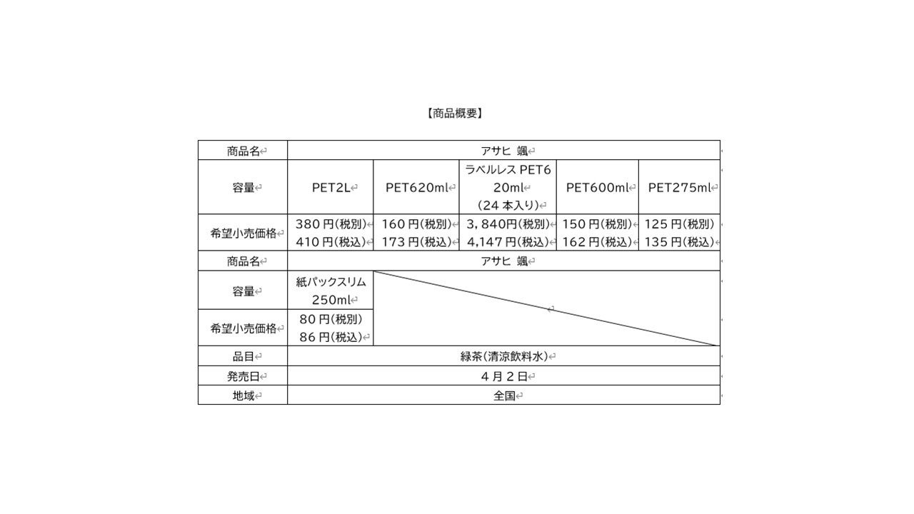 アサヒ飲料株式会社(本社 東京、社長 米女太一)は、緑茶ブランド『アサヒ 颯』を4月2日からパッケージを刷新して発売します。