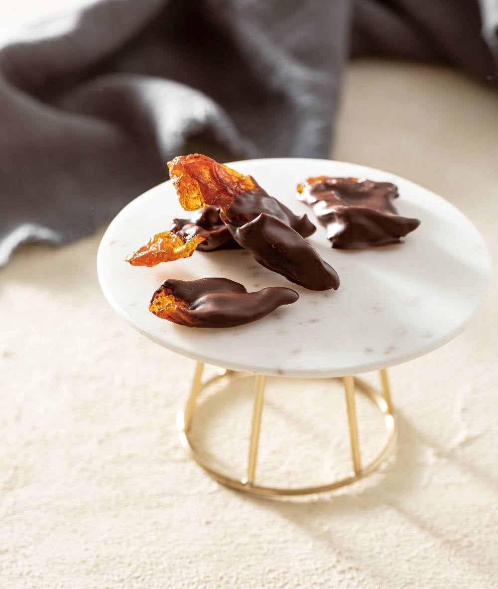 コロンビアでカカオの栽培から取り組むカカオディレクターの石原氏が、自ら調合したオリジナルのクーベルチュールと、日本中を巡り出会った旬素材を掛け合わせたアロマ生チョコレートが代表作。リキッド状のショコラが流れ出す、新作の「ショコラ・コキーユ」も登場します。
