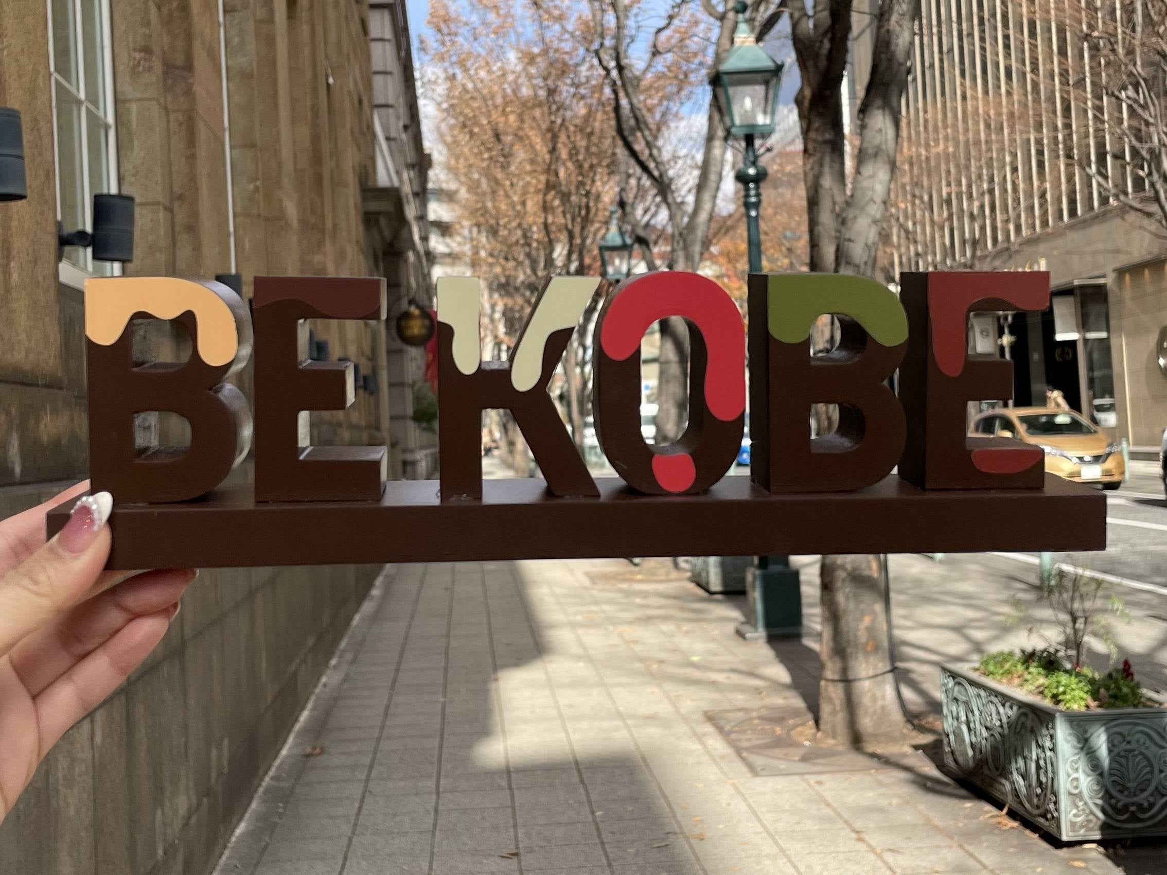 ↑旧居留地の対象ショップに設置の「チョコがけ BE KOBE」オブジェと一緒に写真を撮って、プレゼントをもらおう!(インスタキャンペーン)