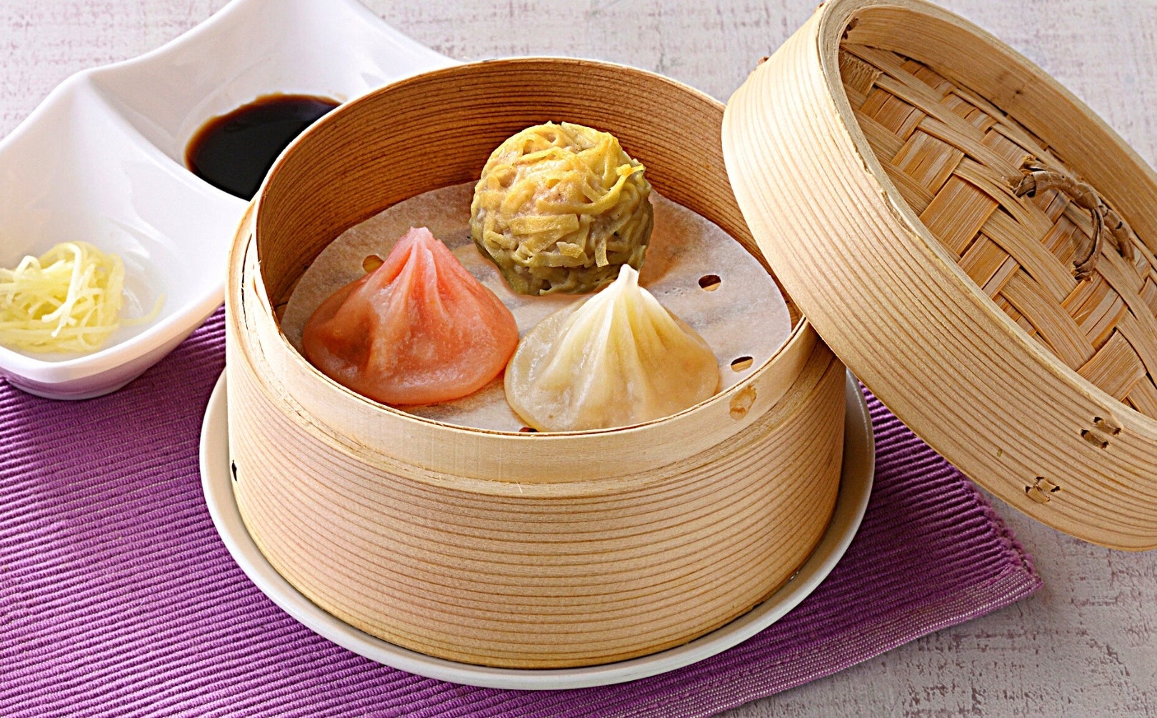 (飲茶3種:自家製小籠包 / 蟹小籠包 / 錦糸卵の焼売)※飲茶3種は一皿のご提供となります。