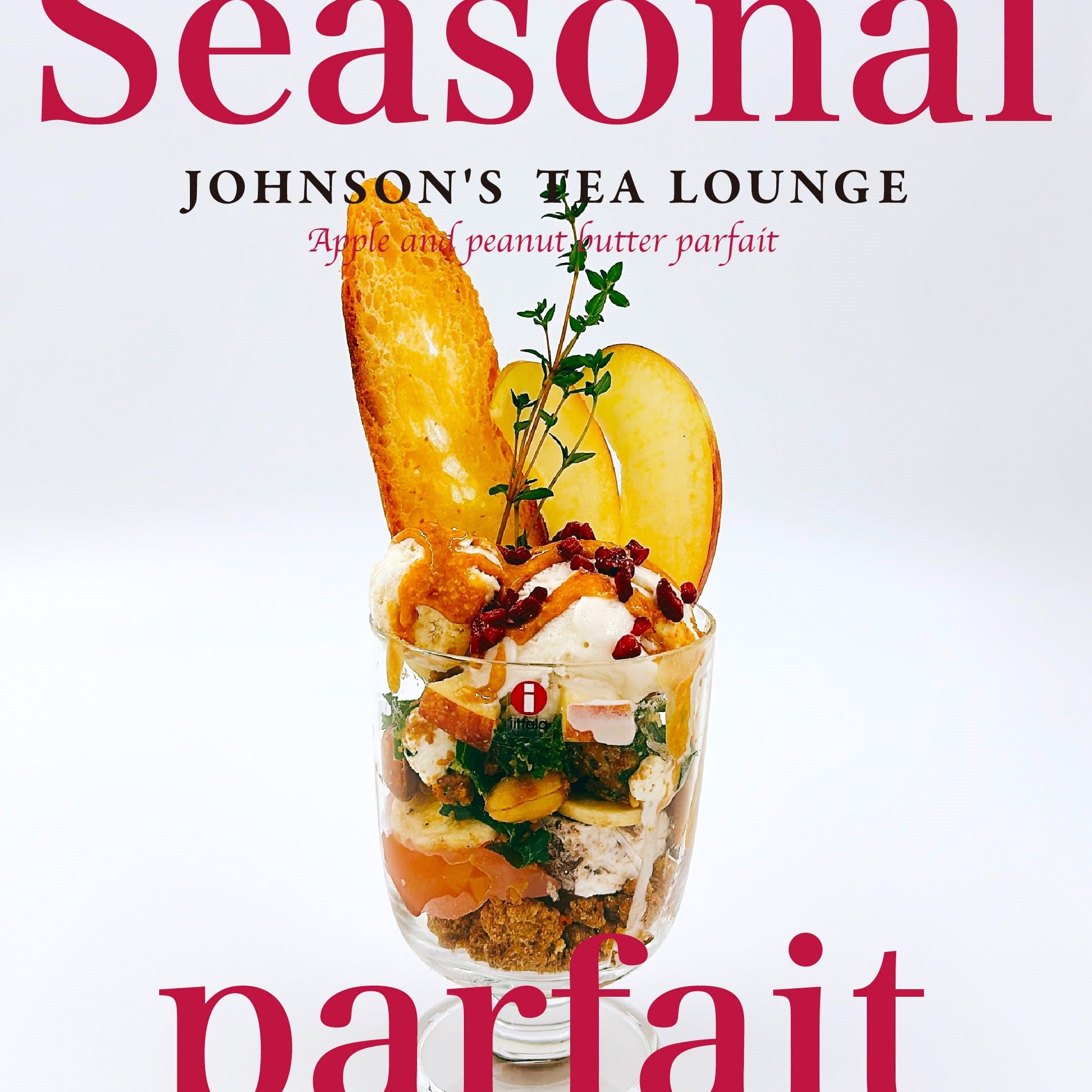 最後にJOHNSON’S TEA LOUNGEでNo.1人気のりんご加賀棒ほうじ茶がアイスとゼリーに形を変えパフェの中に登場しています。そんな様々な食材すべてをまとめてくれるバターラスク。ぜひアイス以外の食材とも一緒にお召し上がりください。