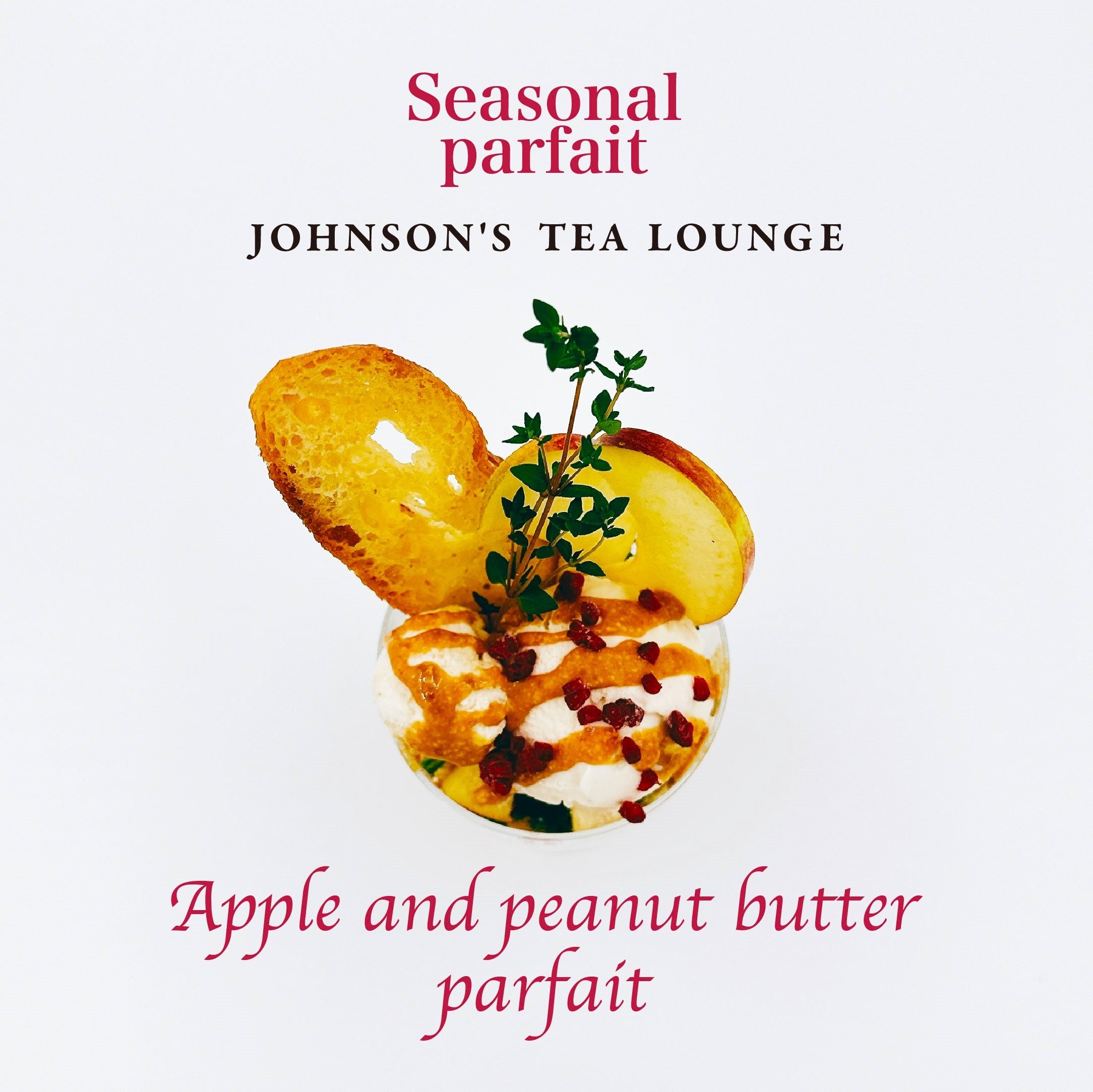 林檎とピーナッツバターの、濃厚だけどさわやかな組み合わせ。店頭では全食材が記載されたお品書きと一緒にご提供します。ぜひお楽しみください。