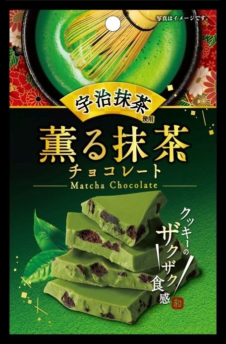 商品特徴: 京都府産宇治抹茶を使用した抹茶味のチョコレートです。チョコクッキーを入れ、ザクザク食感に仕上げました。