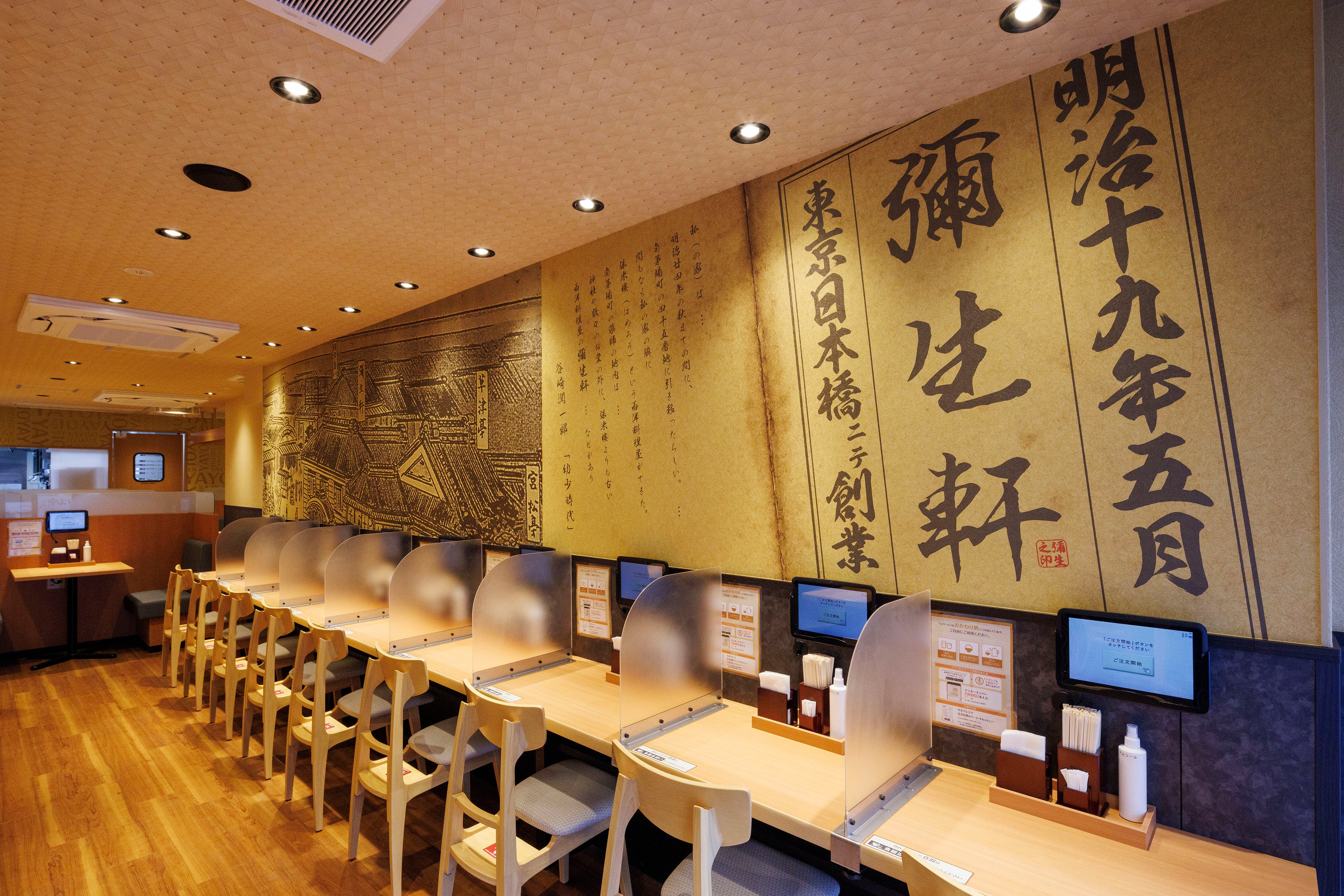 当店舗は昨年12月に公開しました新ロゴ・シンボルマークなど新しいブランドイメージを表現した店舗の名古屋1号店となっております。新ロゴ看板、モダンな“和”をイメージさせる暖簾や「やよい軒」の名前のルーツでもある“彌生軒”の歴史的資料をモチーフとした壁紙など、新ブランドステートメントを表現する“上質な”イメージでデザインされた店舗です。また、ゆっくりとメニューを選んでいただけるよう、テーブルに設置したタブレット端末からオーダーできるなど新しい取り組みも行っております。“ごはん”や“だし”、“漬け物”のおかわり自由が楽しめる『おかわり処』もございます。