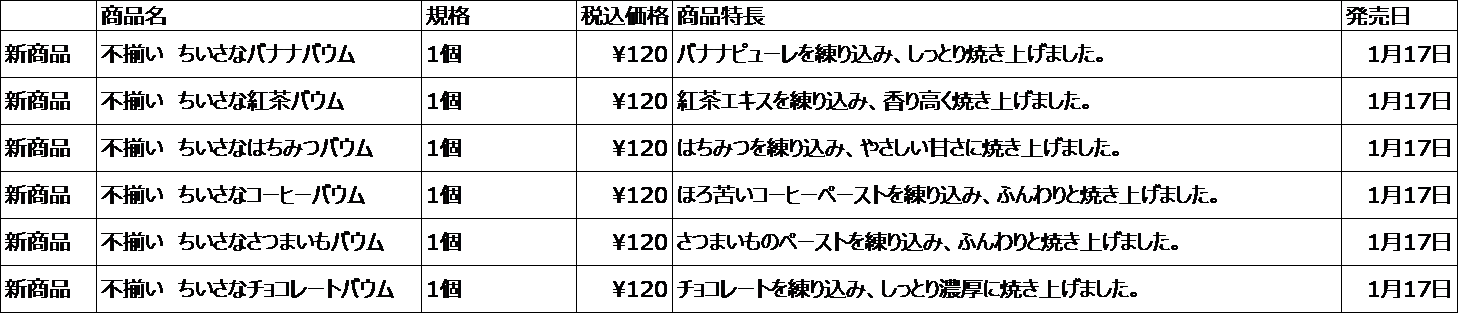 無印良品を展開する株式会社良品計画(東京都豊島区/代表取締役社長 堂前 宣夫)は、人気商品「不揃いバウム」シリーズの約半分のサイズである「不揃い ちいさなバウム」6種を2024年1月17日(水)から無印良品117店舗およびネットストアで発売します。6種の味のうち3種は通年で、残りの3種は期間限定で季節ごとに味を変えて発売します。