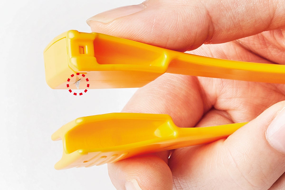 刃がグリップの内側にあるので、手指に触れにくいです。また替刃交換不要なので、替刃交換時のケガのリスクもありません。