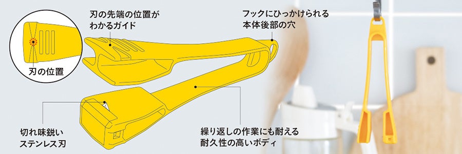 汚れたら水洗いできるステンレス刃なので、キッチンなどの水回りでも活躍します。