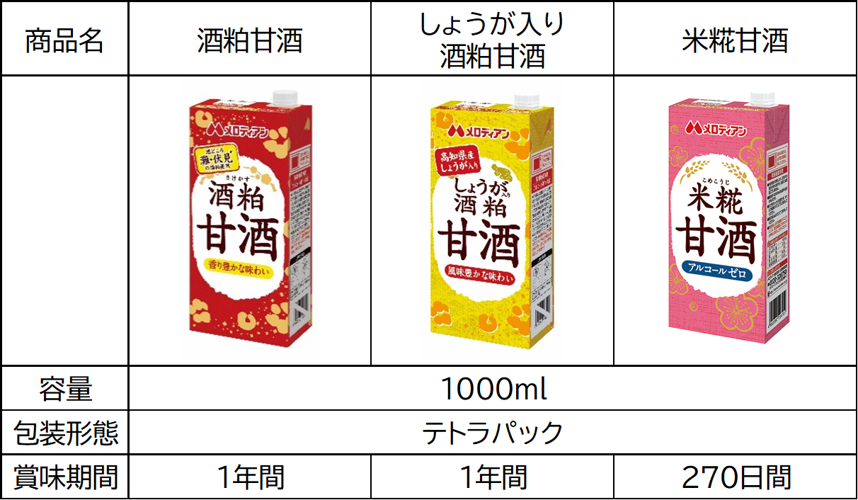 味は、好みに合わせて選べる3種類を展開しています。容量は、ご家族や毎日甘酒を飲みたい方にぴったりの1000mlと、フタシールを外すと電子レンジで温めることができる195gタイプがあります。