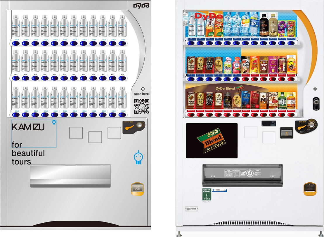 「KAMIZU water」は、京都を中心に近畿圏内における一部のDyDo自販機にて購入いただけます。また「KAMIZU water」のラッピング自販機も同エリアにて展開いたします。