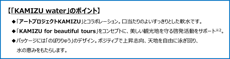 「KAMIZU for beautiful tours」というコンセプトによる「KAMIZU water」を発売することとなりました。