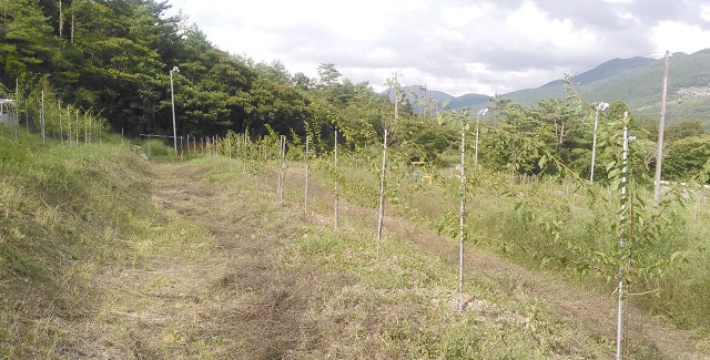 約10,000㎡(1町歩)の畑に露茜を約700本植栽し、栽培をスタート。「露茜(つゆあかね)」は2009年に品種登録された真っ紅になるめずらしい新品種で、自家受粉しないことなど栽培には難しい面があった。