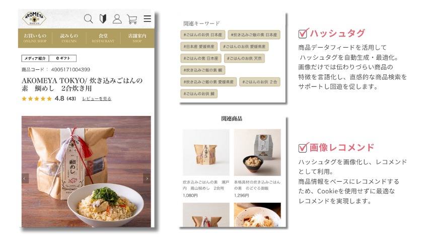 ▼「AKOMEYA TOKYO公式通販サイト」での awoo AI 活用イメージ