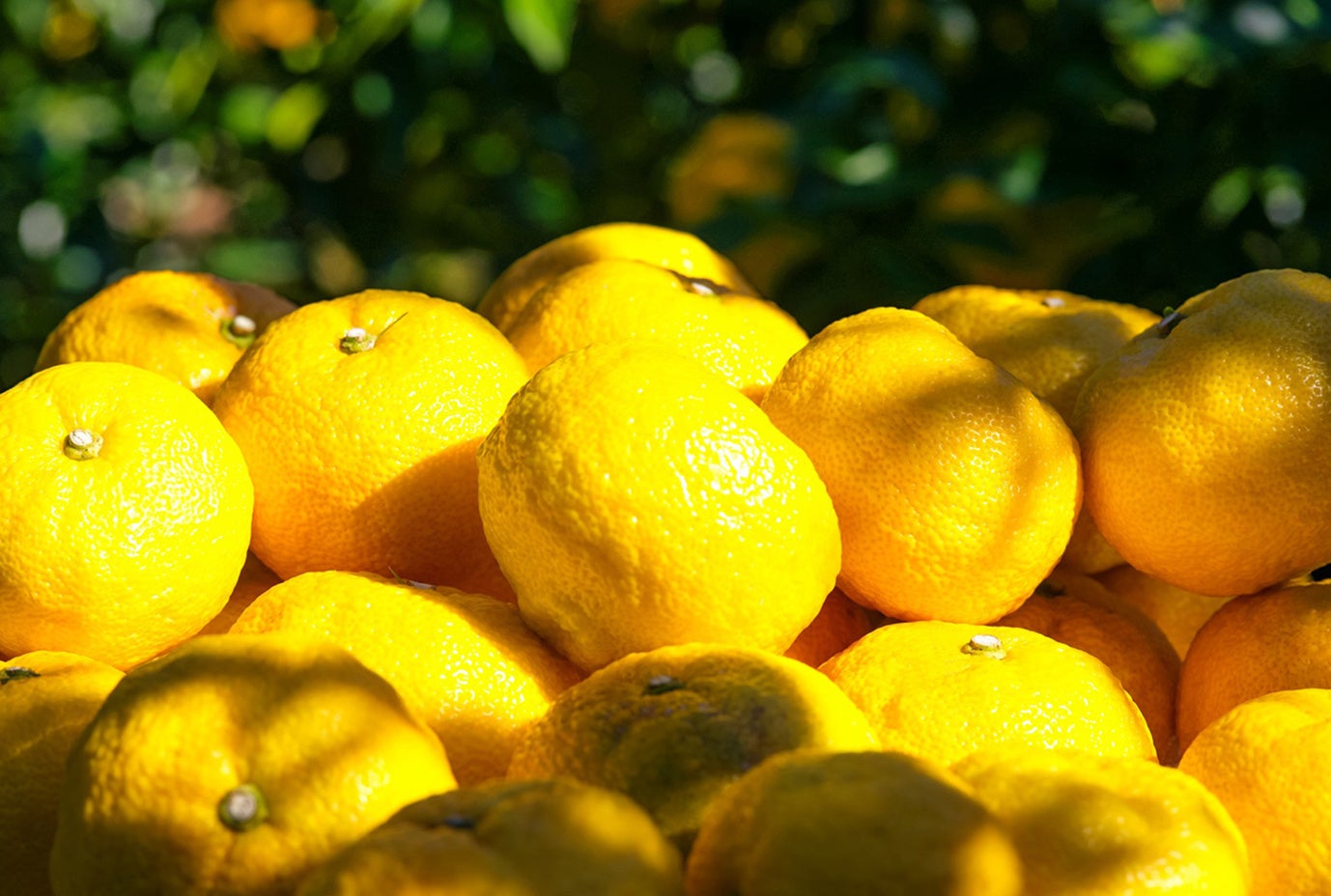 徳島県那賀町「黄金の村」で誕生した『木頭ゆず』。他のゆずでは類を見ない香りの高さと酸味が強いのが『木頭ゆず』の特徴です。『木頭ゆず』の香りが優れているのは標高300〜500メートルに位置する山々で育つことが理由。また、1年を通して寒暖差が激しいことなど様々な条件が合わさることで、香りが高く肉厚(皮が分厚い)で酸味の強い『木頭ゆず』が生まれます。