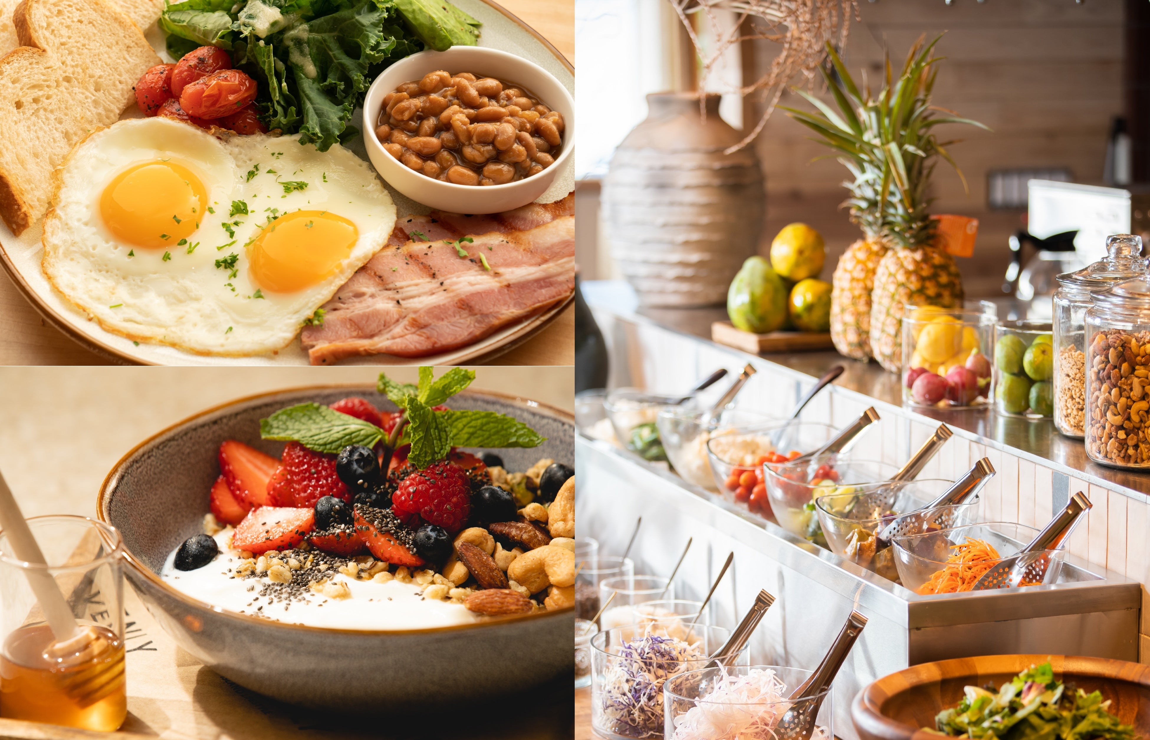 朝食からディナーまで幅広いメニューをラインアップしました。Heavenlyの「Eat Local」のコンセプトは残しながら、地元ファームから仕入れた新鮮な野菜を使ったハワイアンサラダバー、地元産の新鮮な卵を使ったオムレツやブレッキー、アサイーボウル、ベジタリアンメニューなども提供しています。Heavenly Hawaii Kaiでしか味わえない、KOKO HEADロコモコやデミオムライス、地元の方にも好まれているグリーンパスタやビビンパ、カレーなどを取り揃えております。今後はディナータイムも営業を開始し、ステーキや豊富なサイドメニューを準備しています。ALOHA BEERカンパニーとのコラボレーションで作ったオリジナルビールもございますので、ぜひご賞味ください。お子様メニューやスイーツも充実しておりますので、テイクアウトもぜひご利用ください。