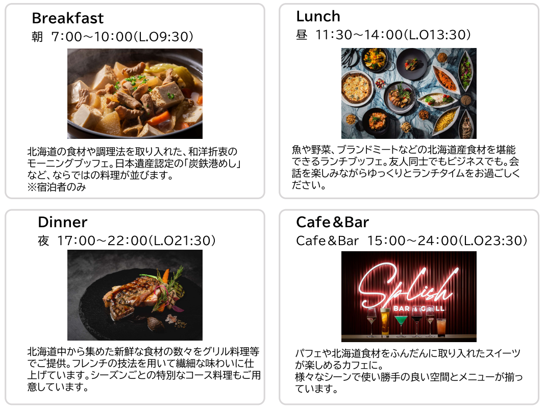 「北海道とつながるモダングリル」をテーマに、地元食材をふんだんに取り入れたメニューをご用意。