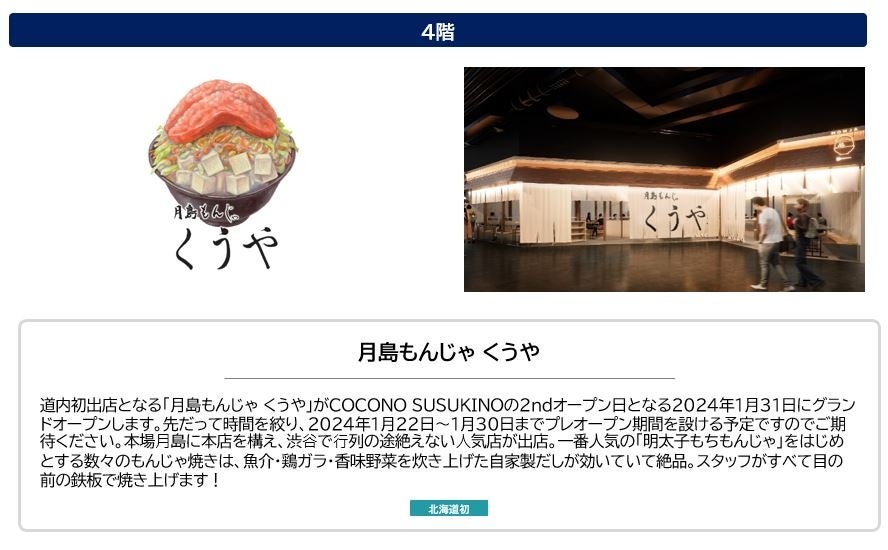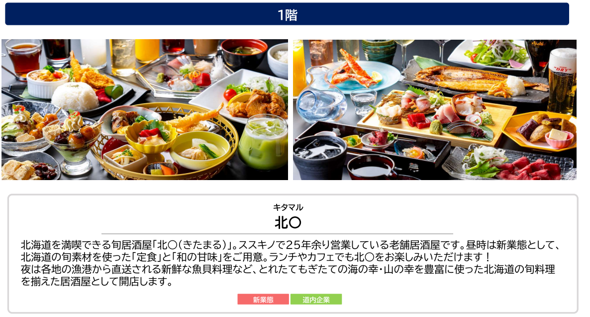 4階「COCONO 横丁」に続き、すすきのでは希少な食の集積である「COCONO FOODHALL」が3階に本格オープンします。北海道や札幌初出店のお店に加え、地元札幌で愛されているお店など、様々な「美味しい」が集まるフロアとなっています。ディナーはもちろん、職場の同僚や友人とのランチにも利用できる、すすきのの新しい食のスポットです。