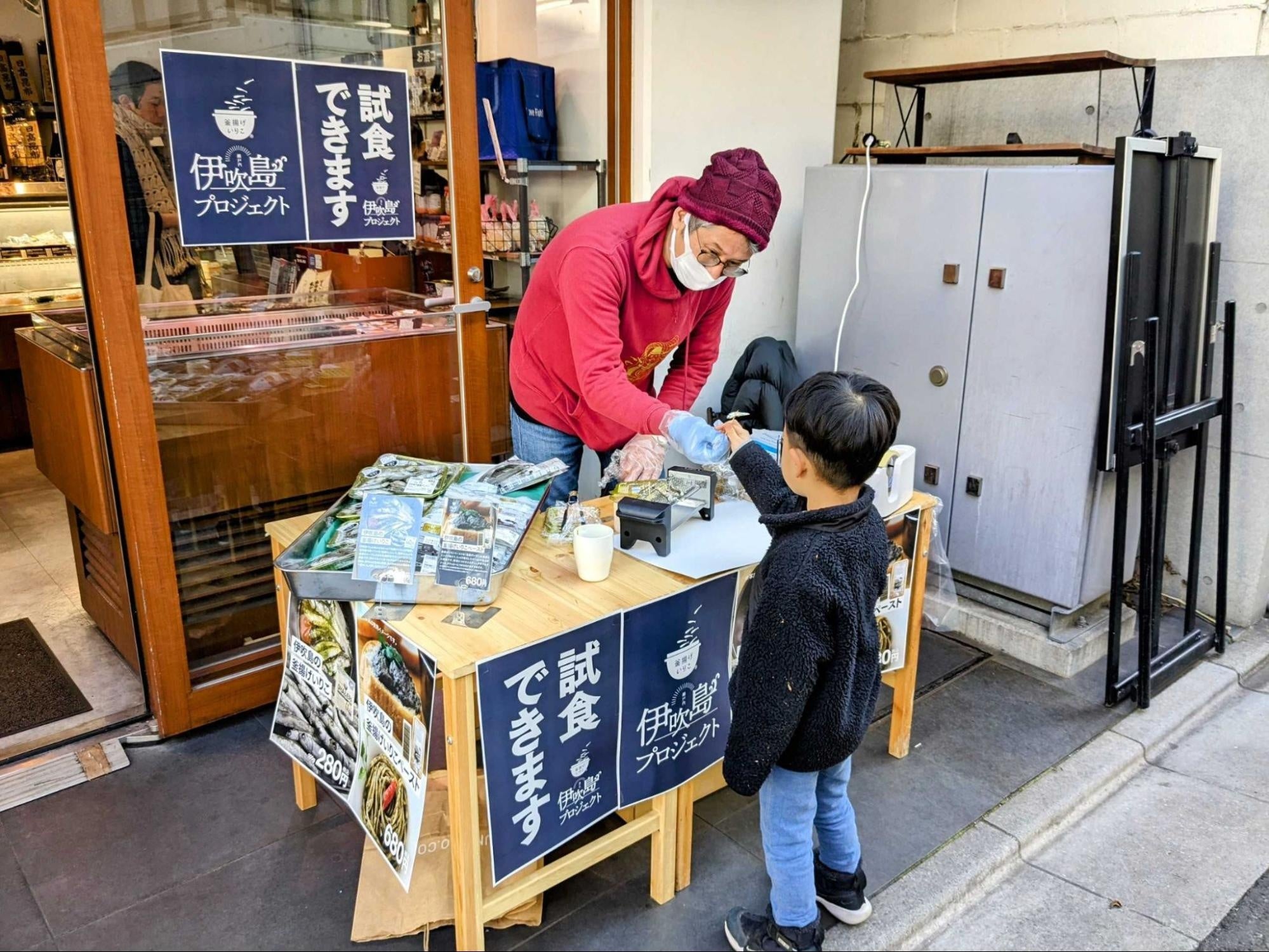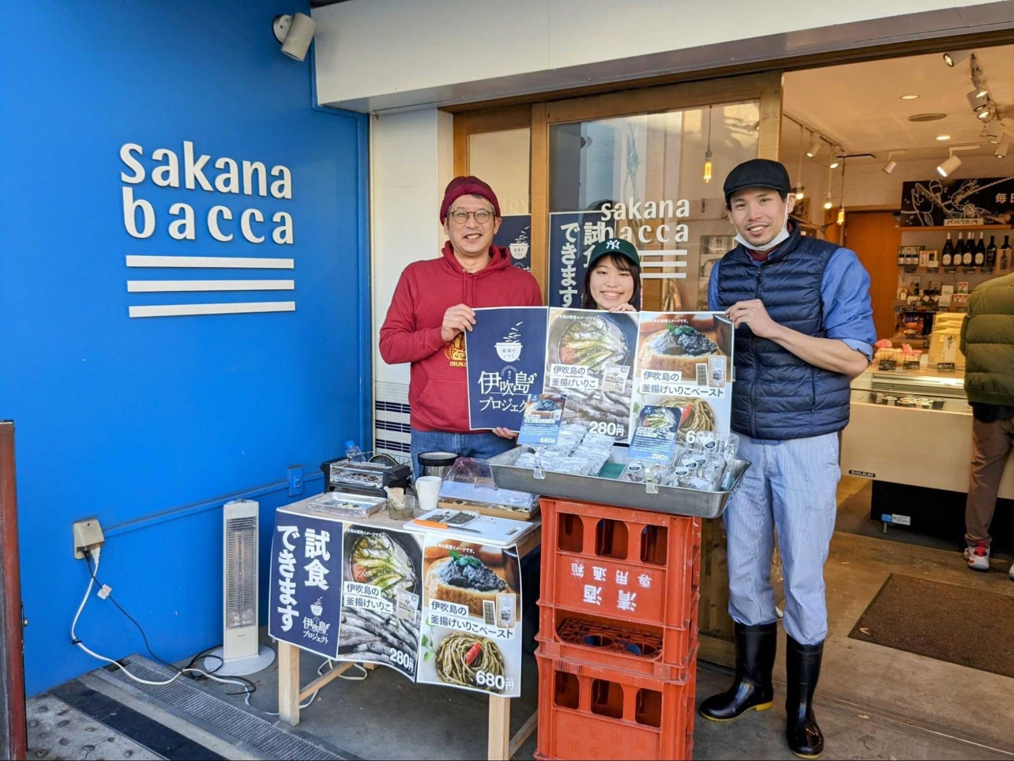 「生鮮流通に新しい循環を」をビジョンに掲げる株式会社フーディソン(本社:東京都中央区、代表取締役CEO山本徹、証券コード:7114、以下当社)が運営する魚屋sakana bacca(以下サカナバッカ)は、香川県の西端にある離島、伊吹島のいりこ漁の網元と地元食品加工業者が立ち上げた「伊吹島プロジェクト」と共同で『釜揚げいりこ』の店頭試食イベントを1月13日(土)と14日(日)に開催しました。『釜揚げいりこ』は、伊吹島の低利用魚「脂イワシ」が原料の新食材で、主に伊吹島のなかでしか消費されていませんでした。今回、サカナバッカの来店客100名以上にその美味しさを体験いただきました。