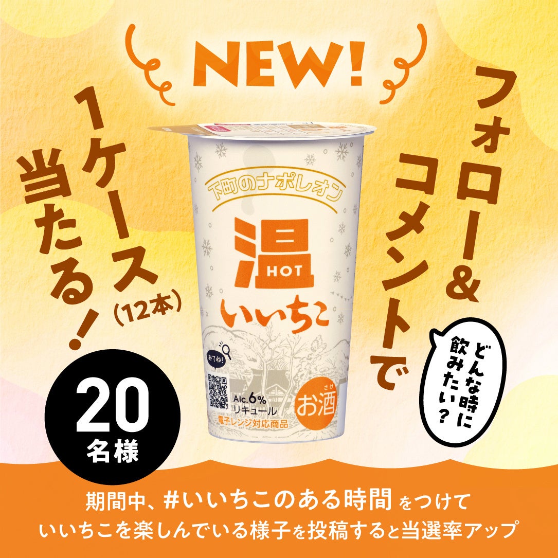 いいちこ公式Instagramアカウント をフォローした上で、『ホッといいちこ』をどんな時に飲みたいかコメントしていただいた方の中から20名様に 『ホッといいちこ』1ケース(12本入り)をプレゼントするキャンペーンを実施いたします。