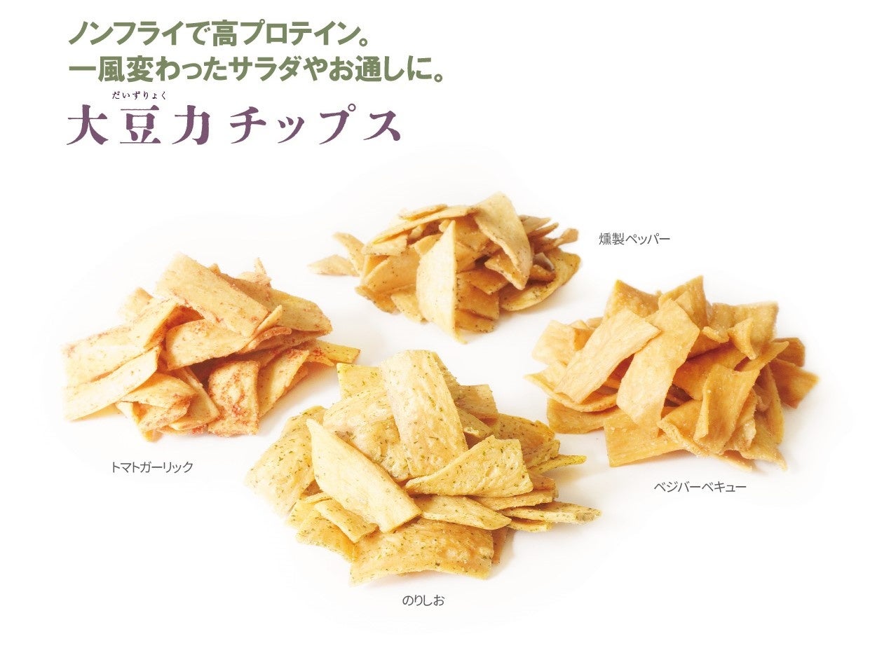 大豆力パフや大豆力チップス、大豆力麺など、多彩な商品ラインナップで、