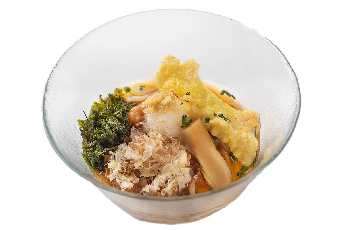 一方、冷たいラーメンは甘めのスープに、鶏天とメンマ、大根おろし、すりおろし生姜、小葱、梅肉、あおさ、そして鰹節をのせ、しっかりと冷水でしめた平打ち麺でさっぱりとした味わいに仕上げています。