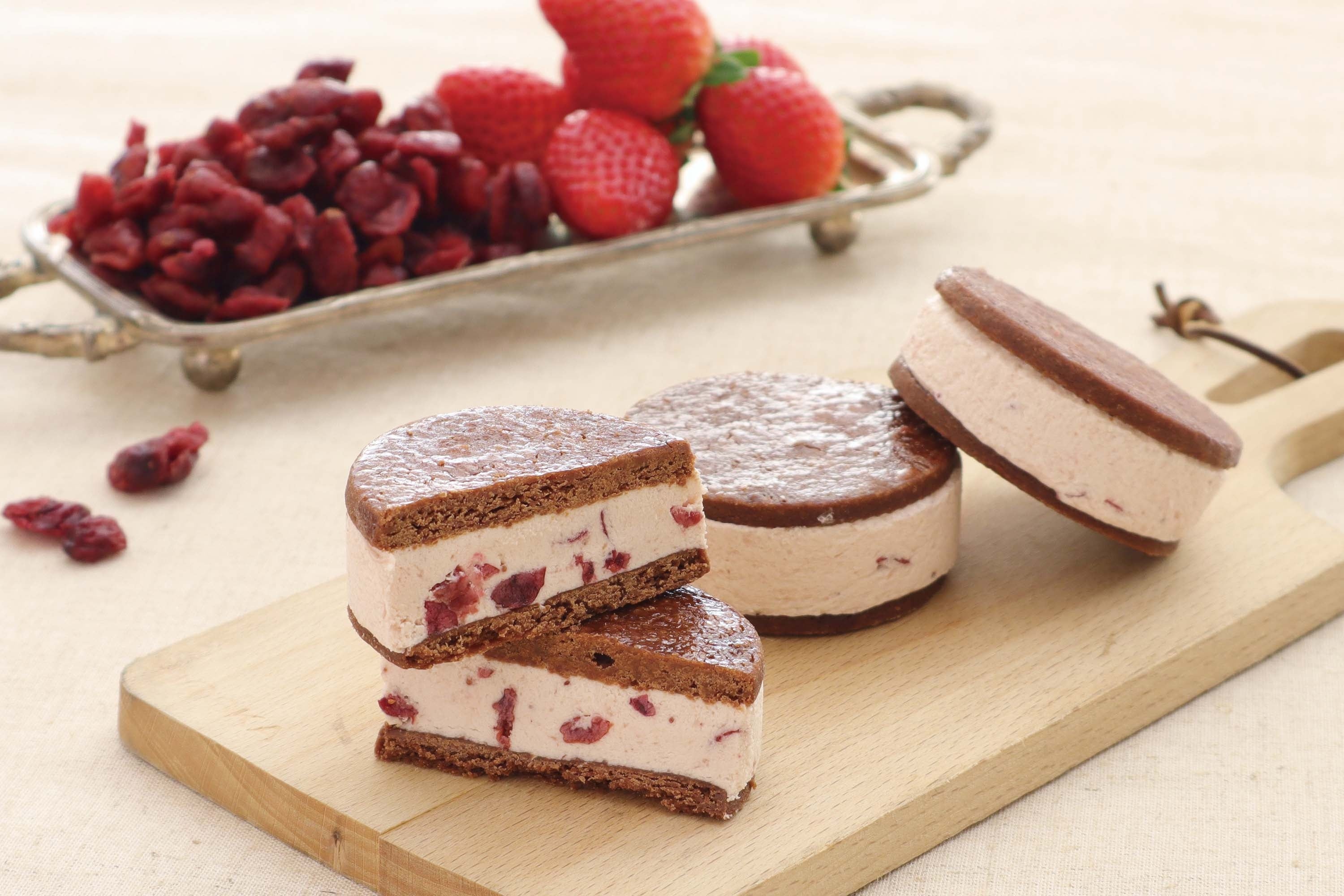 大本命のバターチーズサンドからは、「あまおうジャージーミルク」が登場。北海道「ファームズ千代田」さんから特別にわけていただくジャージー牛乳と、「「あかい・まるい・おおきい・うまい」が語源でしっかりとした甘みとほのかな酸味で濃い味わいを楽しめる福岡県産の苺「あまおう」をベースのバタークリームに贅沢に合せました。苺ミルクのようなやさしい甘さに、クランベリーがアクセントになっています。