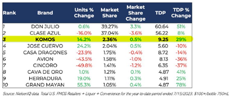 他に類のない味わい、香り、色合い、そして美しい磁器製のボトルが特徴、その名の由来をギリシャ神話上の神の名前に持つKOMOSは、既に世界の20か国以上で楽しまれているテキーラで、その勢いは過去に例がなく、アメリカではわずか3年で3位を獲得しています。[参考:ニールセンデータより(2023年7月15日現在*1)]*1参考文献