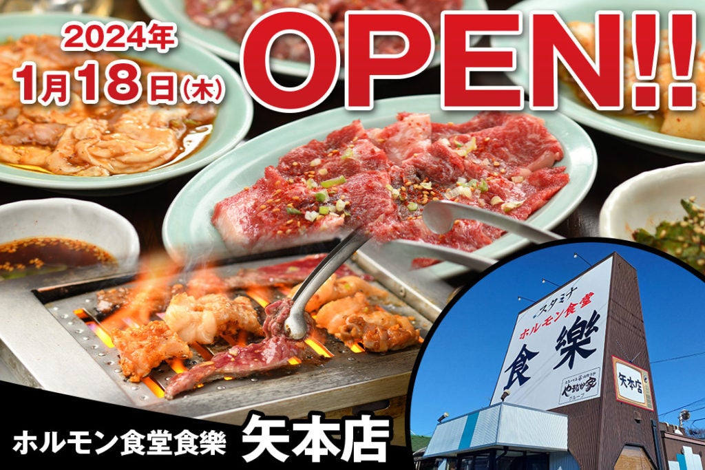 サンドウィッチマンのCM「元氣が旨い!」でおなじみの、焼肉冷麺やまなか家のサブブランド『ホルモン食堂食樂』19店舗目の矢本店が東松島市にOPEN!