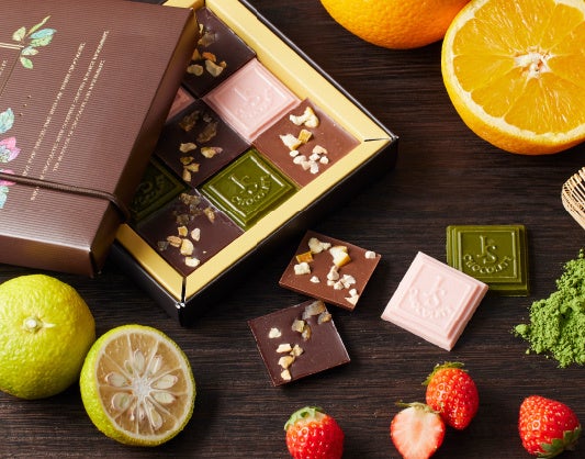 今回の「フルーツショコラ」は、「千代田組」(※)とコラボレート。日本の農家さんたちが大切に育てつつも、品質や味には問題がなくても小さな傷があったり、見た目が不揃いという理由から規格外として出荷されずに廃棄されてしまう事が多いフルーツに着目。これらのフルーツを少しでも多く救うため、フレッシュなおいしさをそのままピューレに生まれ変わらせる「フードロス削減の取り組み」と、この趣旨に賛同いただいた「トップショコラティエや人気ブランド」とともに、おいしくて未来にやさしいフルーティなショコラが誕生しました。
