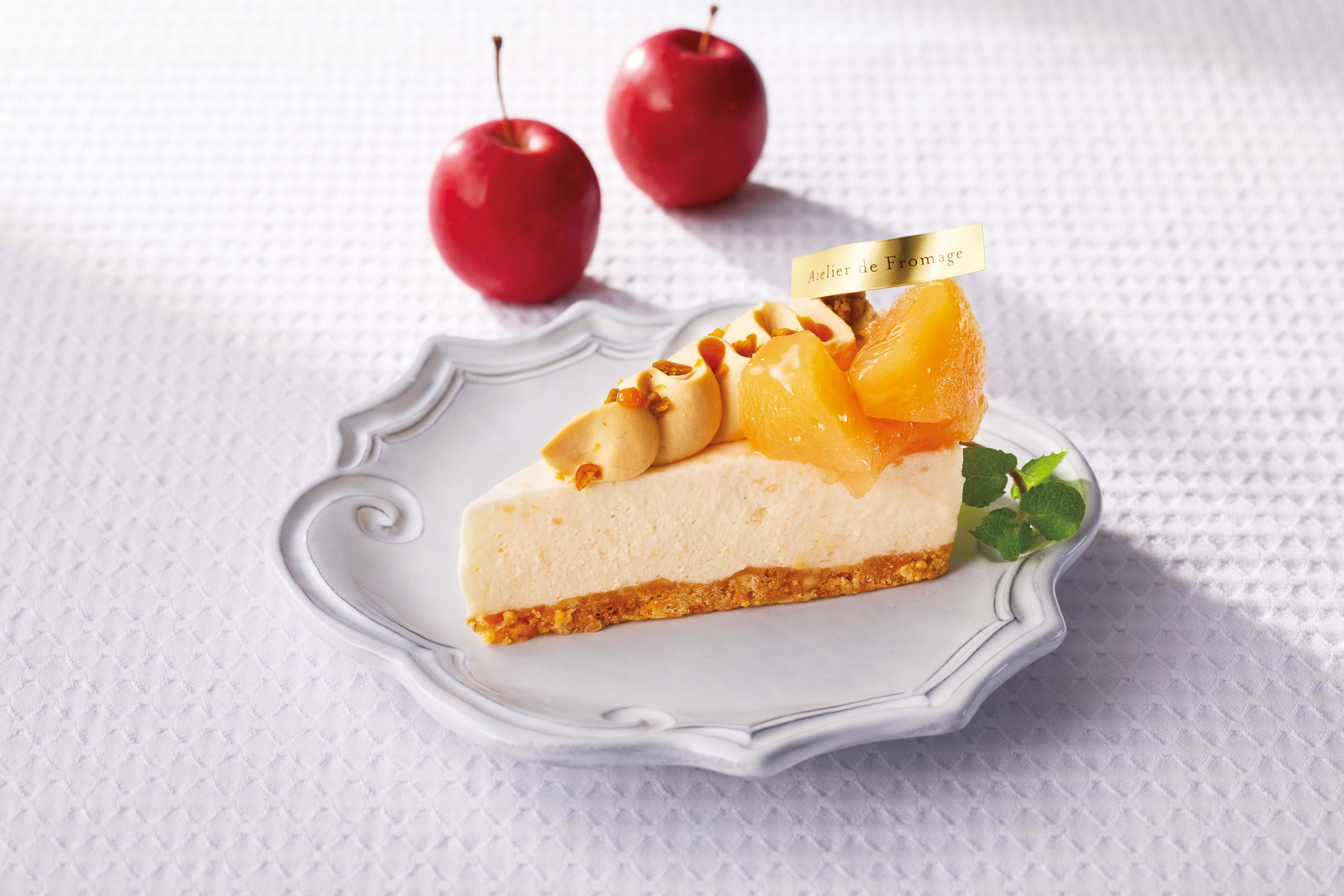 自家製チーズのレアチーズケーキに、信州産紅玉りんごとキャラメルチーズクリームを合わせて。