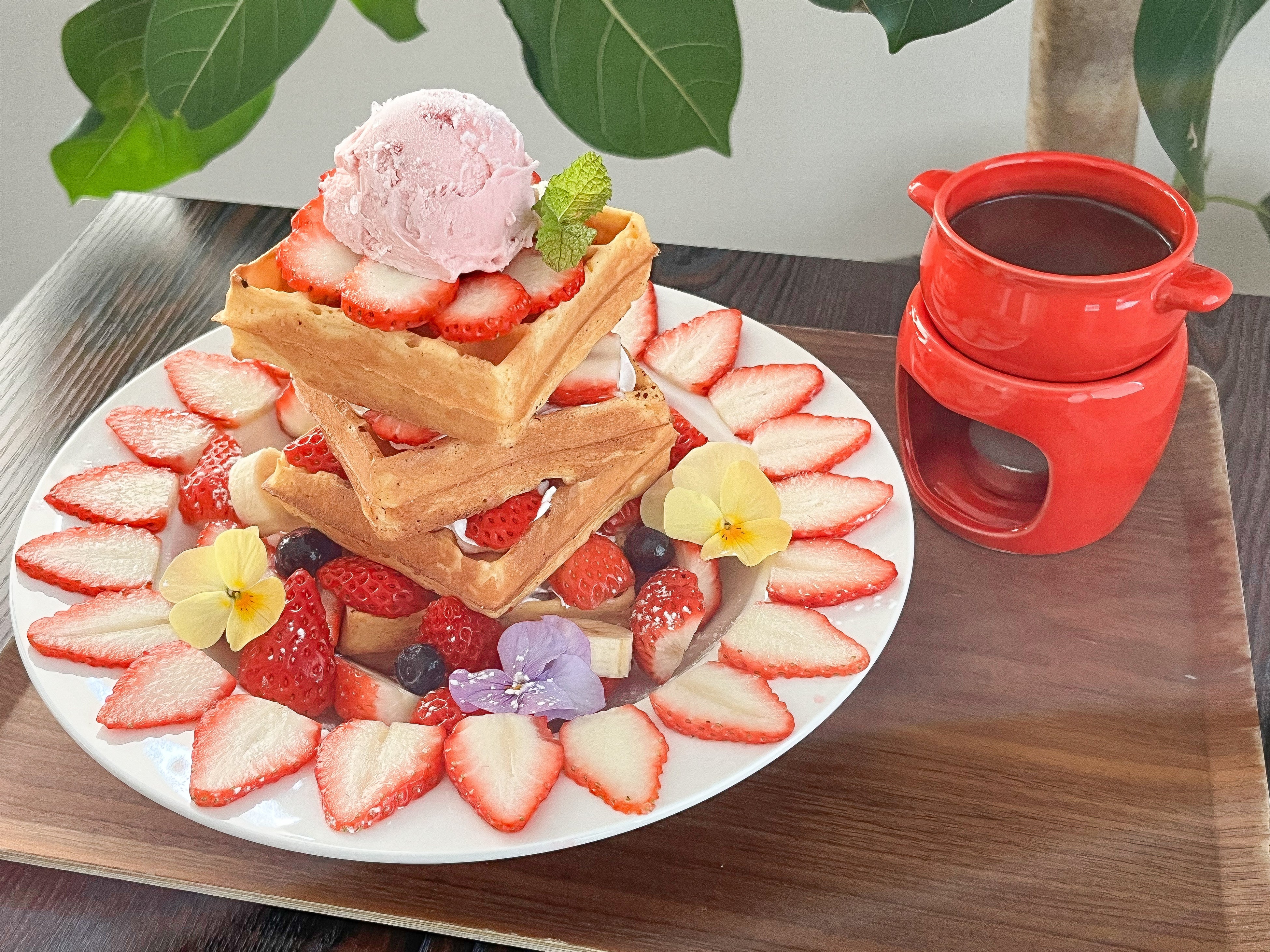 焼きたてで提供するワッフルは通常の2倍の量をトッピング。ご家族やカップル、ご友人と美味しいをシェアして、素敵なバレンタインをお過ごしください。