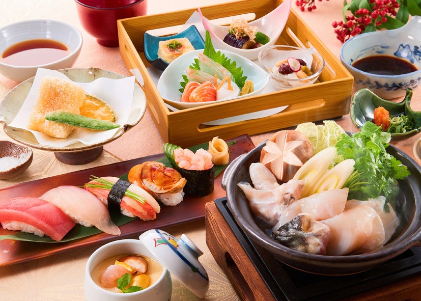 冬の素材が満載!とらふぐてっちり小鍋に季節のにぎりやお造り・白甘鯛の香煎揚げ等