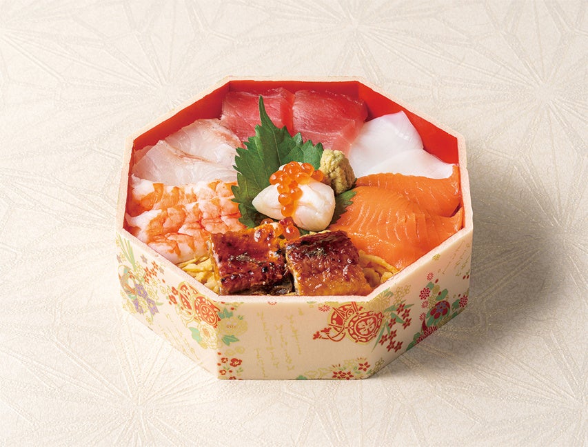 うなぎやいくら、海老、かに等が入った毎年大人気のちらし寿司。